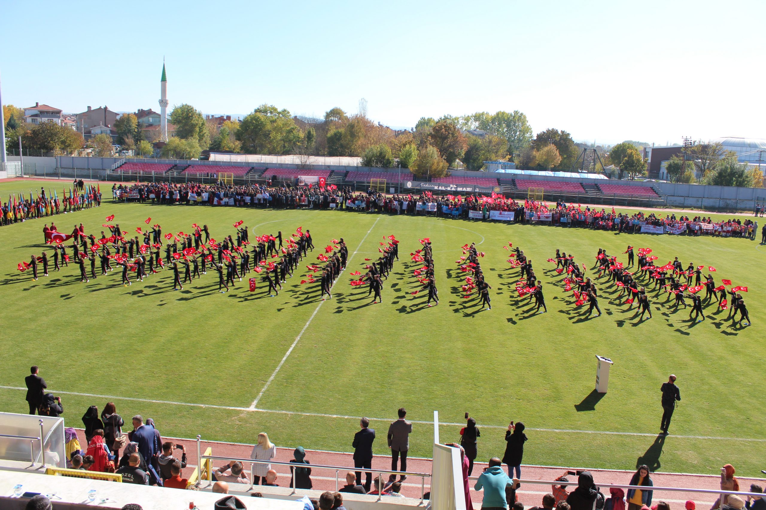 Cumhuriyet Bayramı kutlama programı öğrencilerin geçit töreniyle sona erdi. Bu arada stadyum dışında hazır bekleyen kamu kurumları, özel şirketler ve off-road araçlarının konvoyu ilgi çeken detaylar arasında yer aldı.