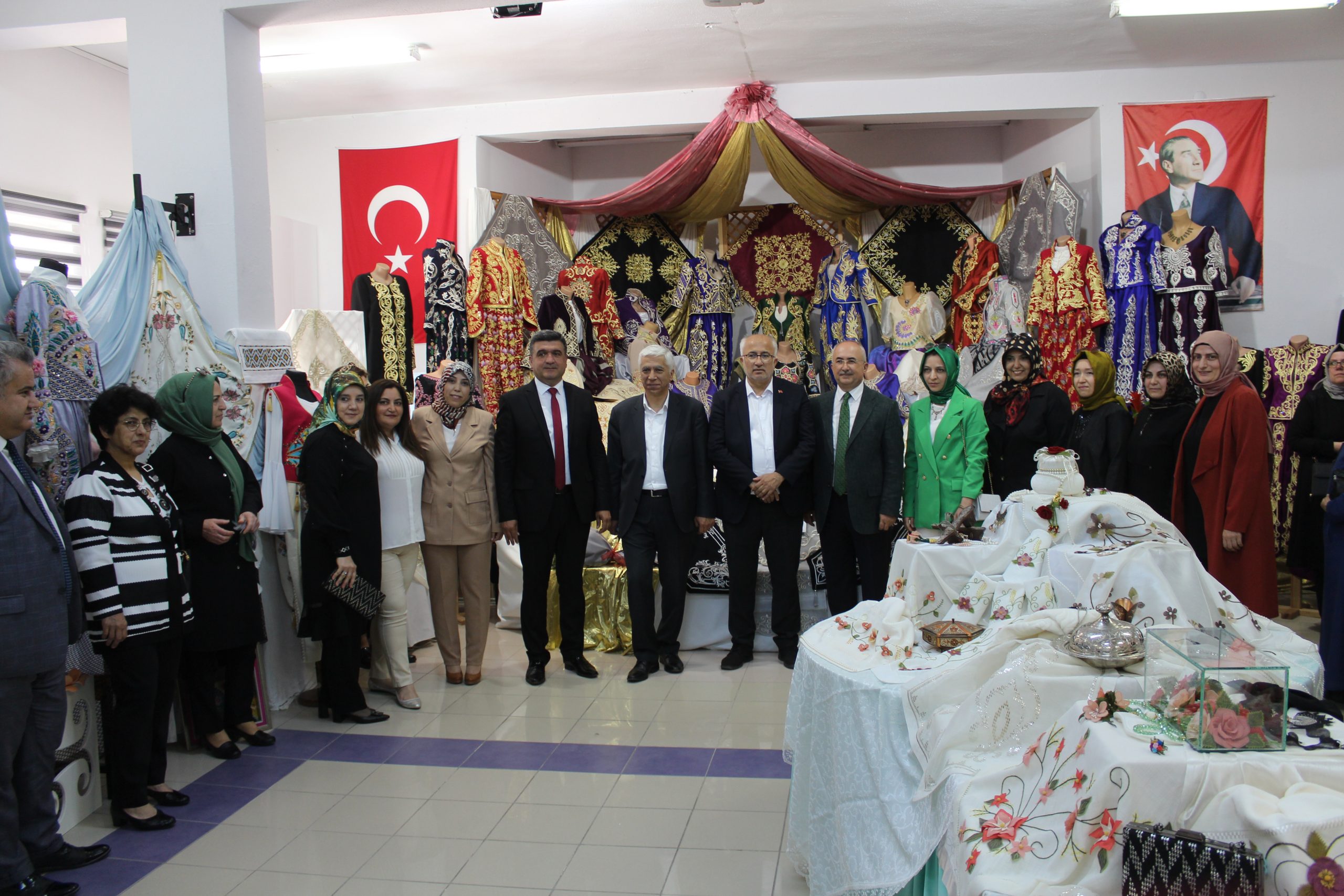 HALK EĞİTİM MERKEZİ’NİN GELENEKSEL YIL SONU SERGİ AÇILIŞINDA BİN BİR EMEKLE HAZIRLANAN ÜRÜNLER GÖRÜCÜYE ÇIKTI. BELEDİYE BAŞKANI MUSTAFA GÜLER SERGİ AÇILIŞINA KATILARAK KURSİYERLERİ TEBRİK ETTİ