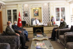 İHH İnsani Yardım Vakfı Kütahya Şube Başkanı Mustafa Yenipazar ve Başkan Yardımcısı Abdullah Atasever ile Tavşanlı Şube Başkanı İbrahim Vehbi Atabay, Belediye Başkanı Mustafa Güler’i makamında ziyaret etti.