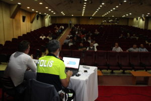 60 katılımcının hazır bulunduğu toplantıda Bölge Trafik Amiri Ali Mert ve Zabıta Trafik Şefi Kenan Karakaya, 25 Ekim 2017 tarihinde çıkan Okul Servisleri Yönetmeliği’ni hatırlatarak 18 maddede istenen şartları, şoförlerin uyması gereken kuralları ve araç sahiplerinin yükümlülüklerini anlattı.