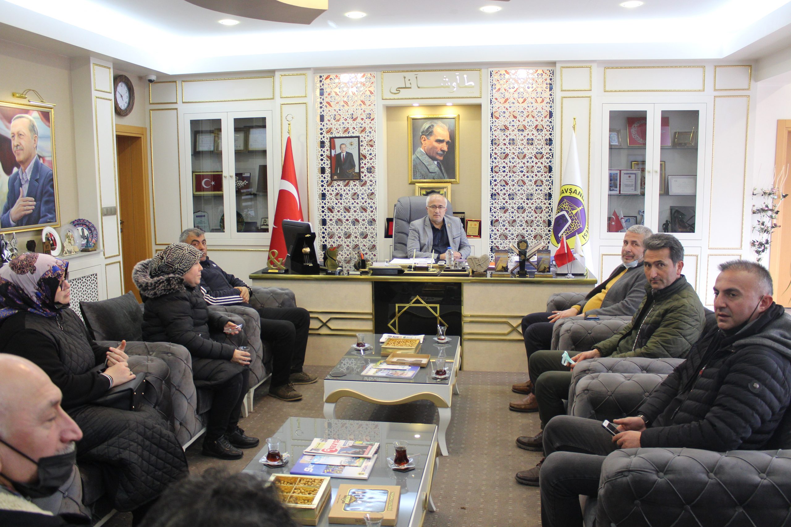Tavşanlı Teziler, Tuhafiyeciler, Konfeksiyoncular ve Ayakkabıcılar Odası yönetimi Belediye Başkanı Mustafa Güler’i makamında ziyaret etti. Geçtiğimiz hafta Meteoroloji Cafe’de kongresini yapan oda üyeleri yeniden başkanlık görevine Halil Sezer’i getirdi. Yönetim kuruluyla birlikte ziyaret turlarına çıkan oda başkanı Halil Sezer, esnafa gösterdiği yakınlık ve desteklerinden dolayı Belediye Başkanı Mustafa Güler’e teşekkür etti. Başkan Mustafa Güler ise her zaman Tavşanlı esnafının yanında olduklarını kaydederek tüm esnafa bol kazançlar diledi.